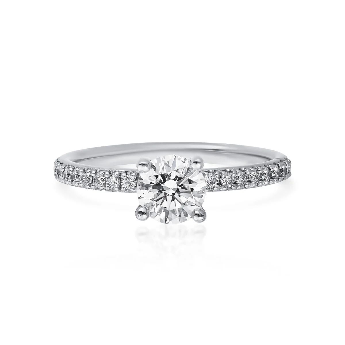 טבעת עגולה עם יהלום מעבדה ושיבוצים בצדדים